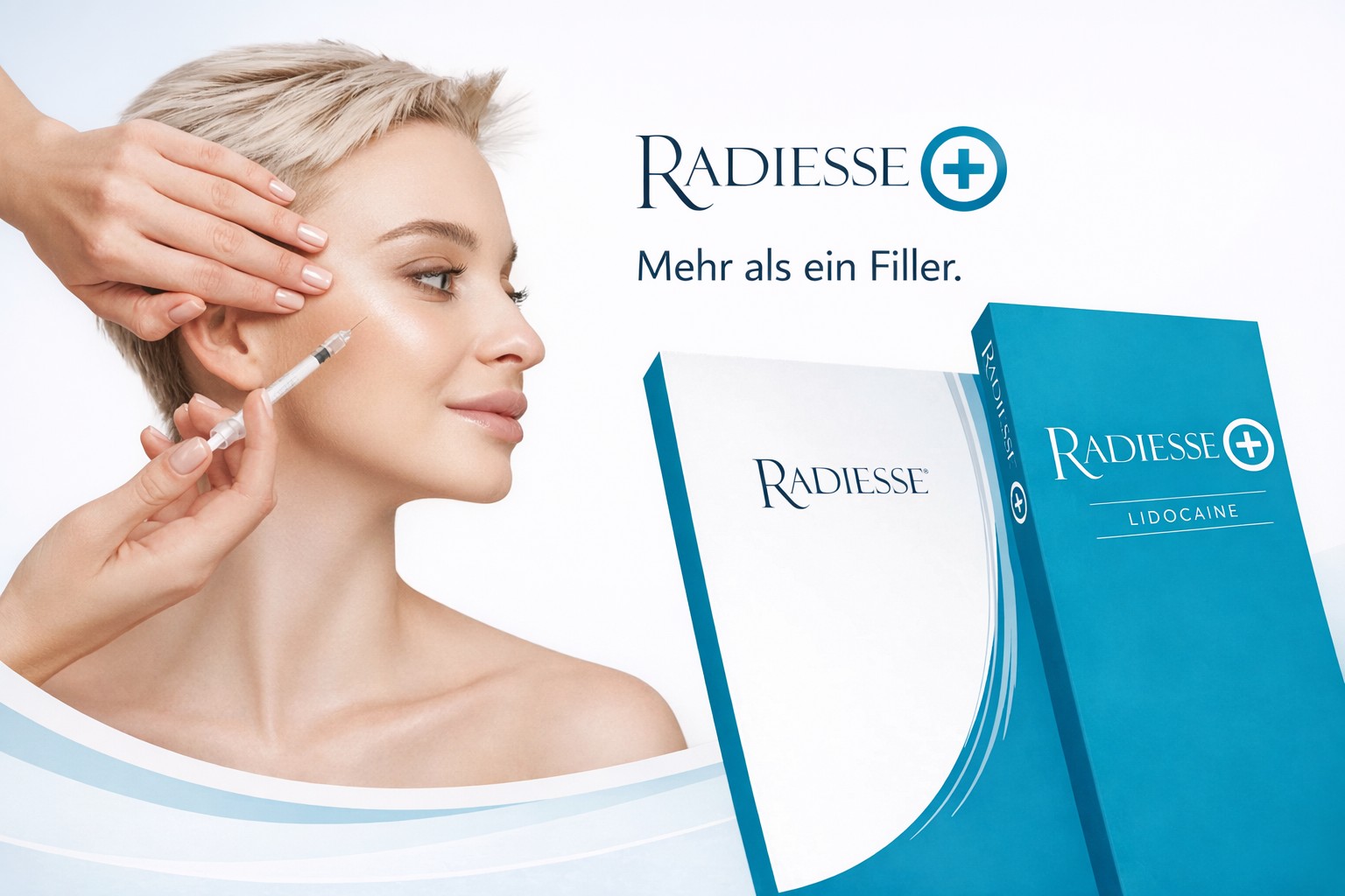 Radiesse basiert auf Calciumhydroxylapatit (CaHA) – einem Mineral, das natürlich in Knochen und Zähnen vorkommt und vom Körper vollständig abgebaut wird. Die Mikrosphären des Wirkstoffs sind in einem Gelbasis-Träger eingebettet und entfalten einen doppelten Effekt: